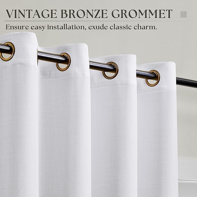 100 Inch White Linen Curtains for Bedroom Living Room, Thick Faux Linen Drapes Grommet Semi Sheer Non See Through Elegant Modern Farmhouse Curtains 100 Inch Length for Dining Pure White